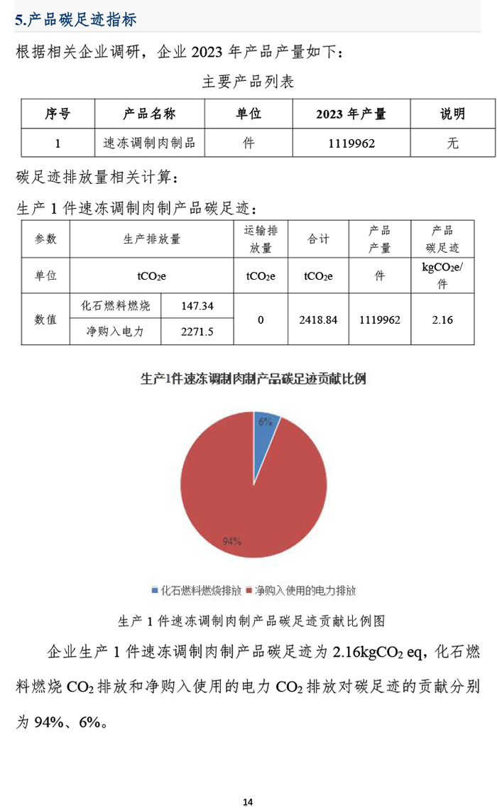 河南灃瑞食品有限公司產(chǎn)品碳足跡報告